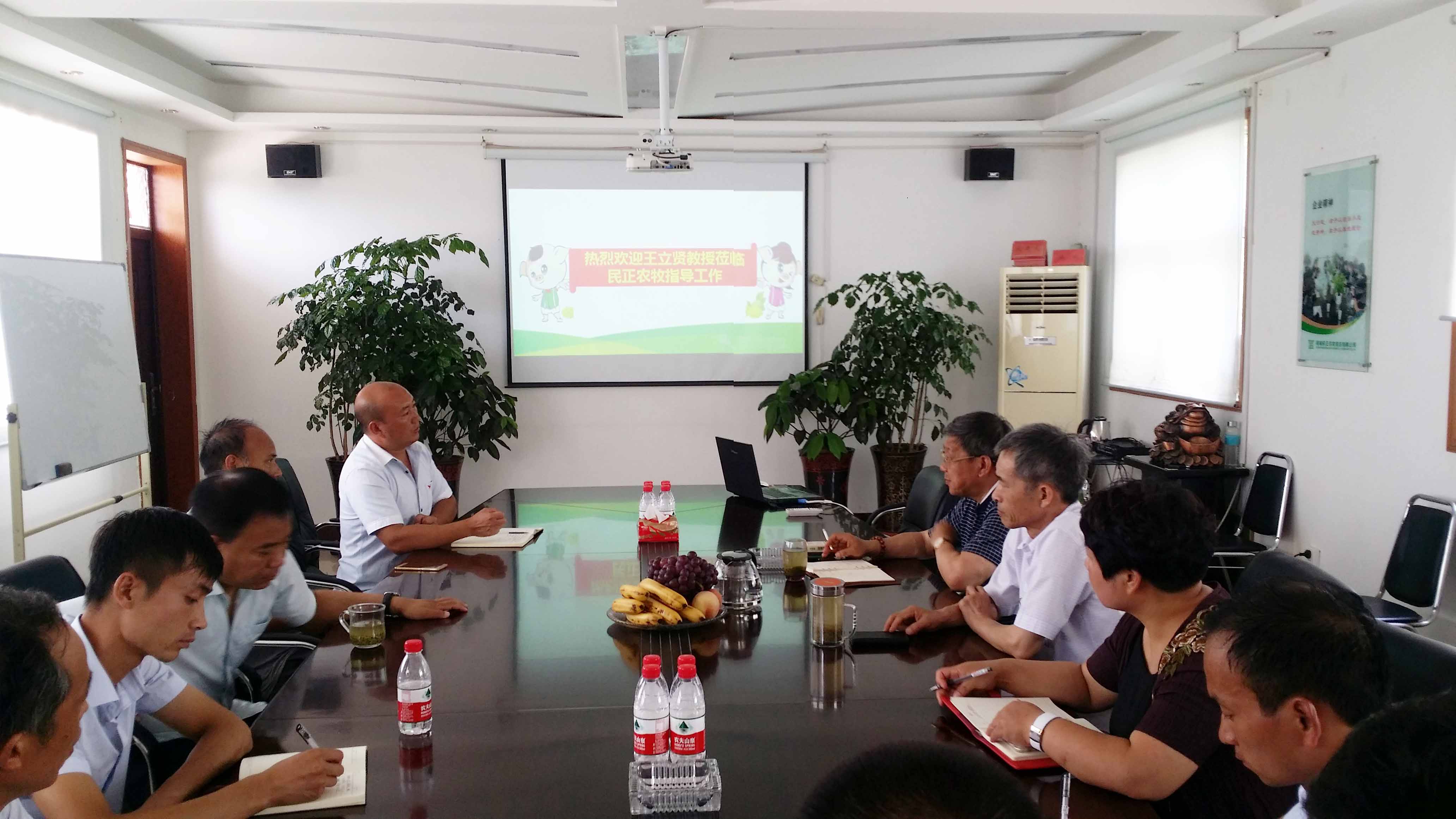 王教授通過對民正農牧一、二、三場區的現場考察,在公司的布局選址、生豬養殖、種豬育種及疾病防控等方面工作做出高度認可和贊揚。7月24日下午王教授在公司多媒體會議室與民正農牧技術部骨干進行了深度溝通,王教授在公司的育種環節和疫病防控環節做出重要的技術指導和改良建議。